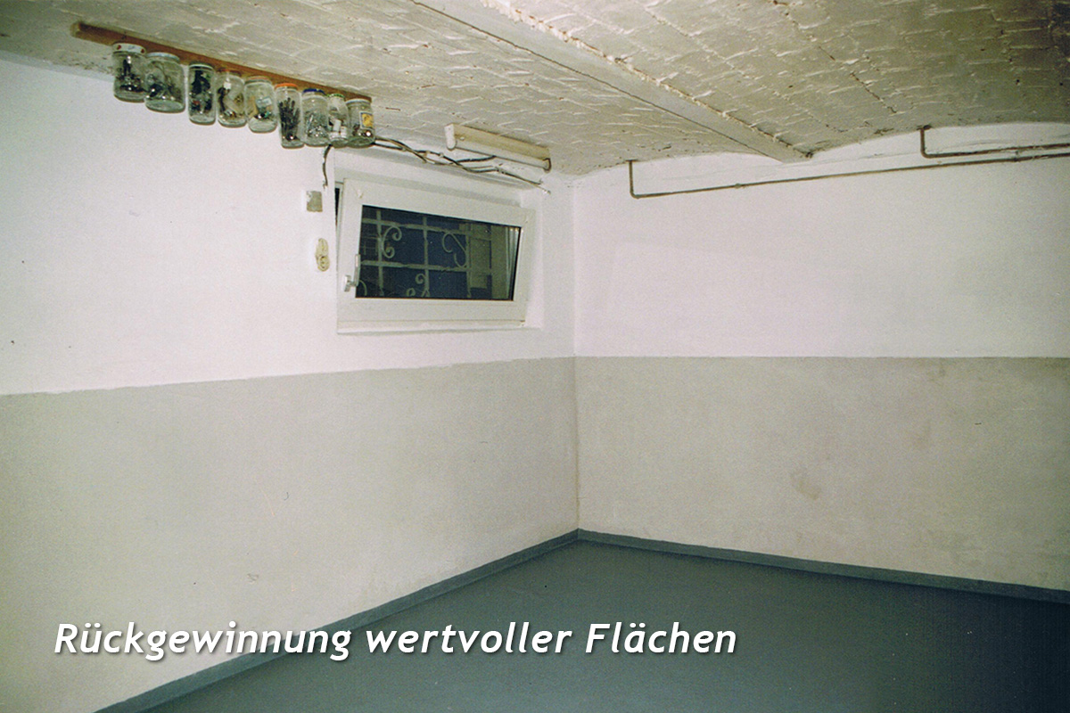 Im Zuge des immer knapper werdenden Wohnraums, aber auch eines wachsenden Interesses an der Erhaltung wertvoller Bausubstanz, gerade bei älteren Häusern, kommt der Sanierung des Kellers stetig wachsende Bedeutung zu. Die Umnutzung dieses Gebäudeteils in hochwertig nutzbare Räume schafft somit Platz und hat entscheidenden Einfluss auf die Erhaltung der Gesamtsubstanz.